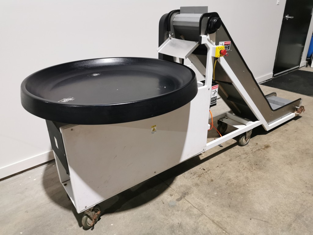 A video is available for viewing at http://www.banksmachinery.com/product/conveyors/incline/6085-incline-conveyor-with-turntable.html
