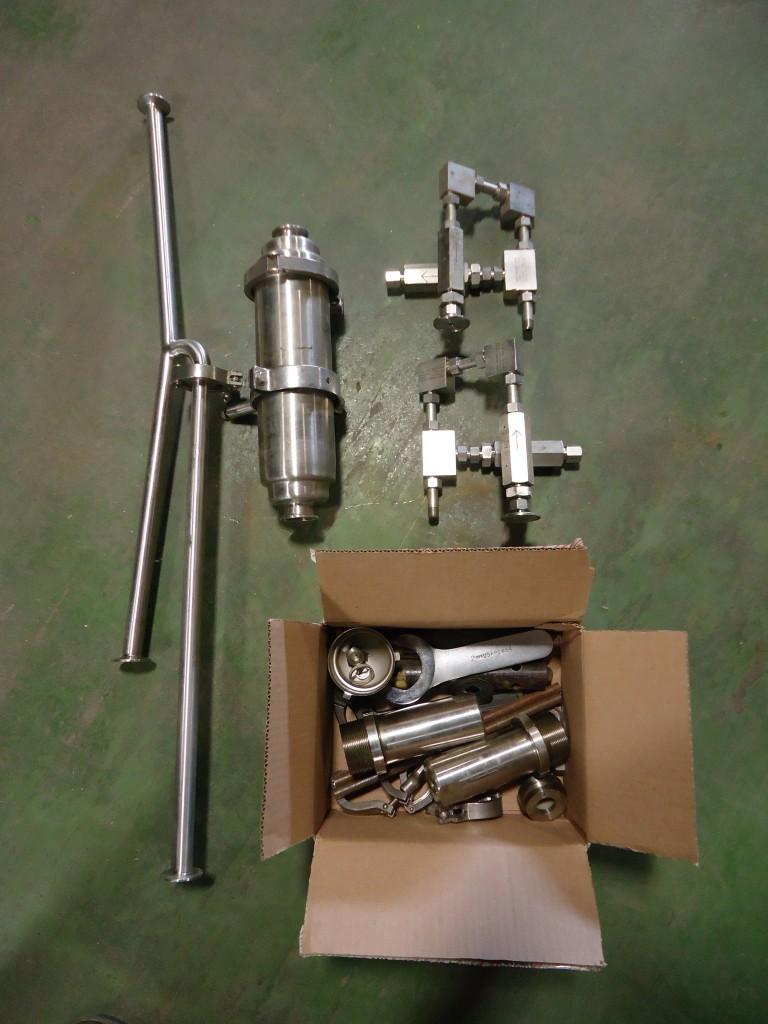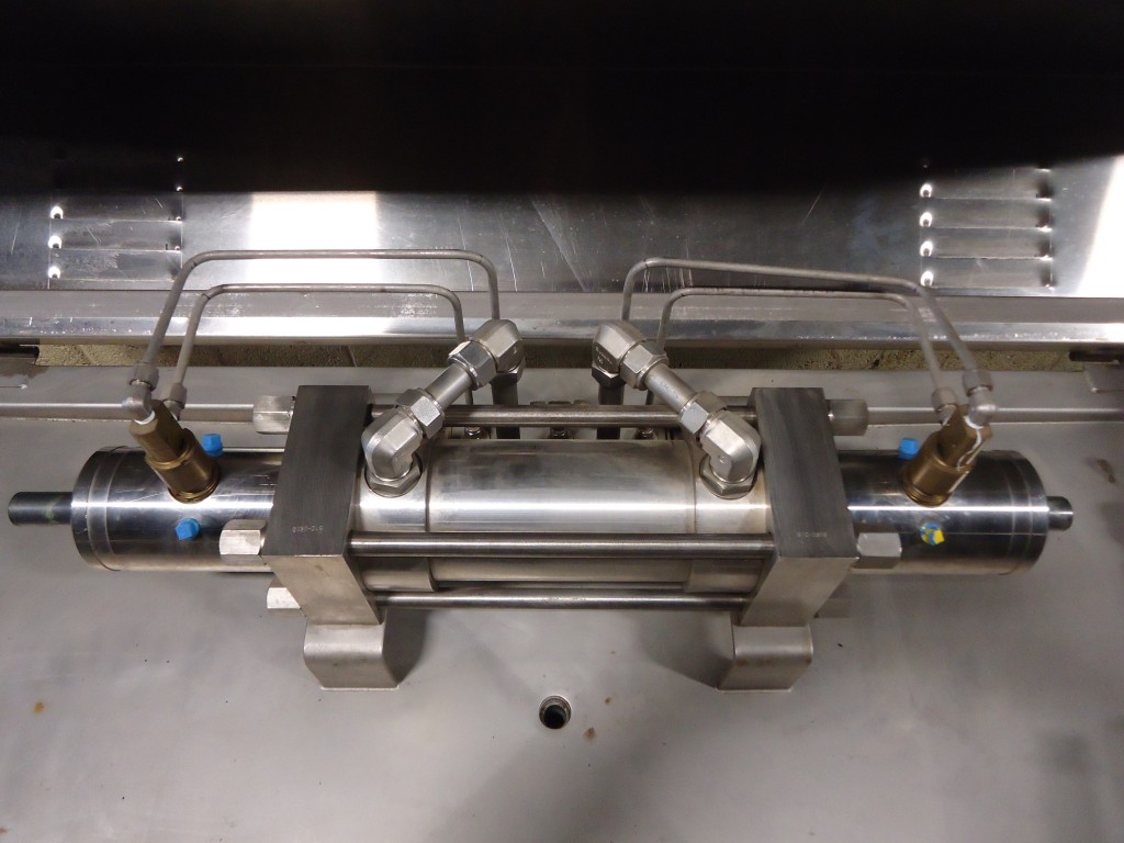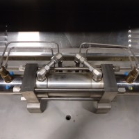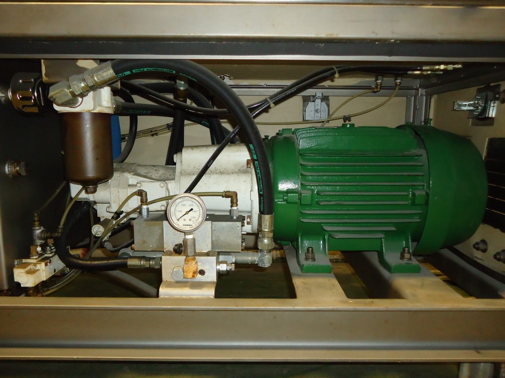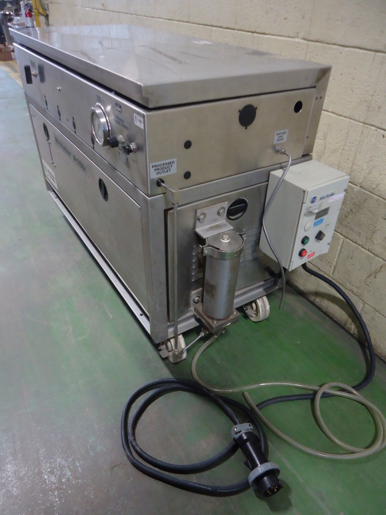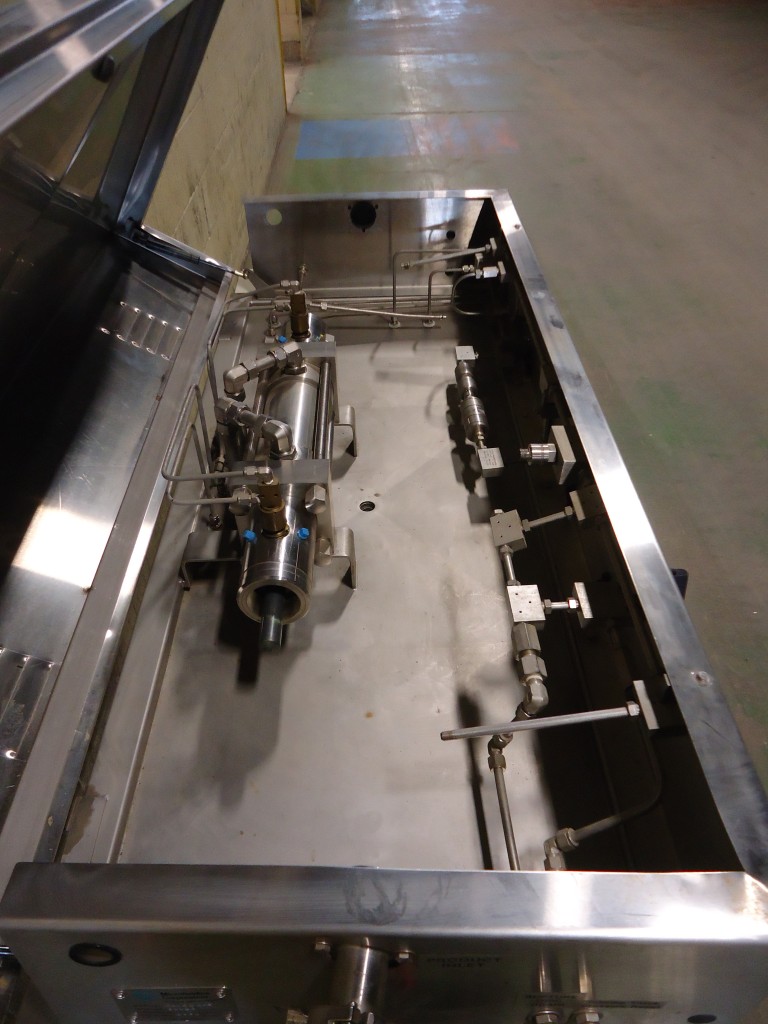 This microfluidizer is all stainless steel. The heat exchanger is 500 psi shell, 150 psi tubes, 250°F temperature. It has a hydraulic fluid pump and reservoir, pressure control and gauge, prime / relief valve. Unit is on casters. Last used in a pharmaceutical facility. Specifications: Operating Pressure: 4,000 to 18,000 PSI, (270 to 1200 bar). Nominal flow rate: 0.5 to 0.6 GPM, (1.9 to 2.3 LPM). Sample size: 1 gallon to continuous.