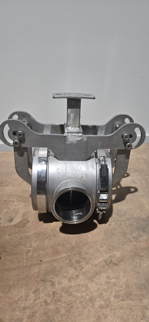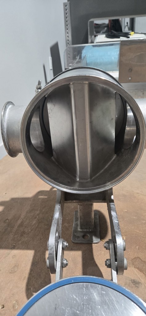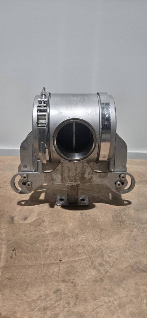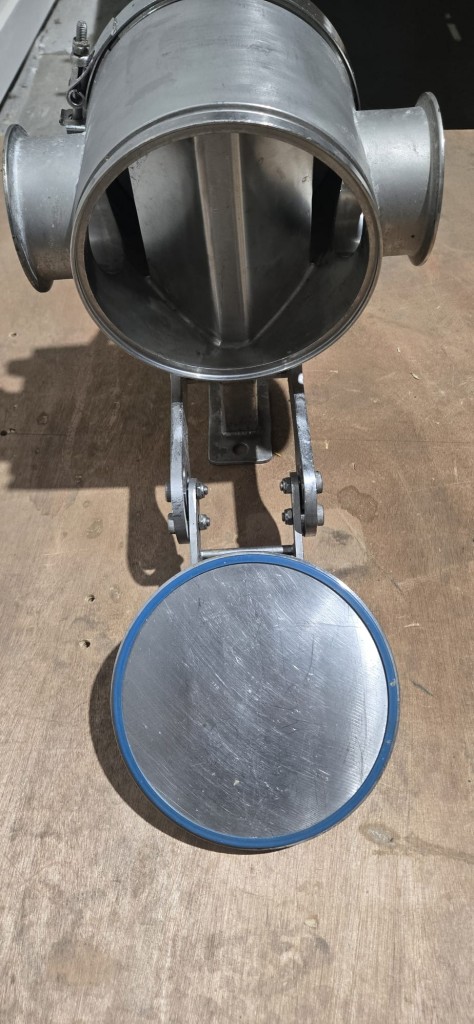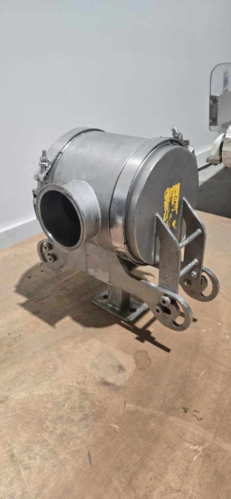 4" food grade magnetic liquid trap. It has rare earth neodymium magnet up to 9000 gauss. This is a plate style for fiberous or larger chunk products. Temperatures up to 120 celcius. All stainless steel.