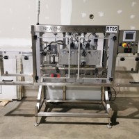 All stainless steel and aluminum construction. Manufactured in 2014. Fully guarded with lock out safety switches on all doors. It has a 1.5" tall infeed alignment belt to feed the bottles into the retorquer. The retorquer is 6 spindle with 1 set of side gripper belts. The belts are 1" tall. Hand crank adjustments for belt and spindle width. The entire unit moves up and down but you would need parts to space the spindles and belts further apart. On height adjustable legs. It has an Allen Bradley panelview 600 touch screen controls. There are some schematic drawings available with the machine. In very good condition. Last used in a pharmaceutical facility.