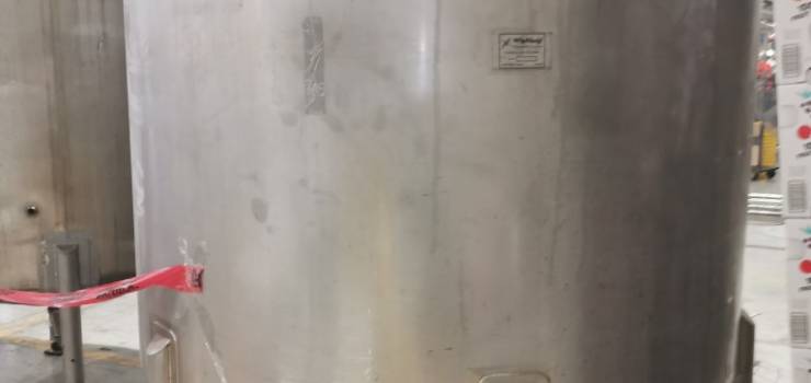 Stainless steel tank on a stainless frame. The tank has a dished bottom and is 40.5" diameter x 56" sidewall (65" deep to outlet). Approximately 320 gallons. The outlet is a 2.5" outside diameter sani clamp connection that is 12.5" from the floor. In good condition. Last used in a pharmaceutical facility.