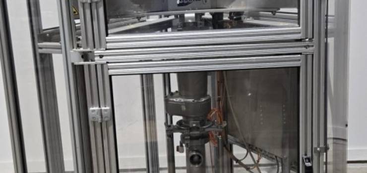 Lab size mixer on a stand. Height adjustable. Pneumatically driven. In good working condition. Last used in a pharmaceutical facility.