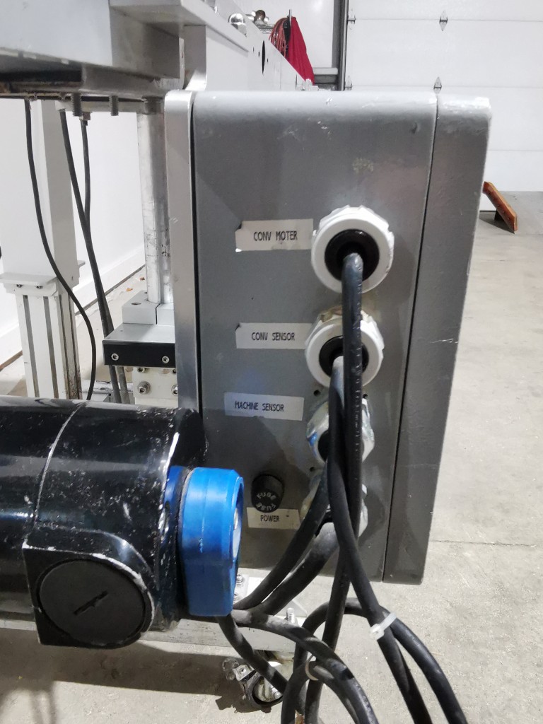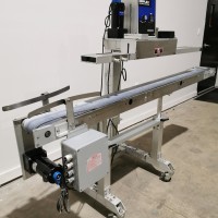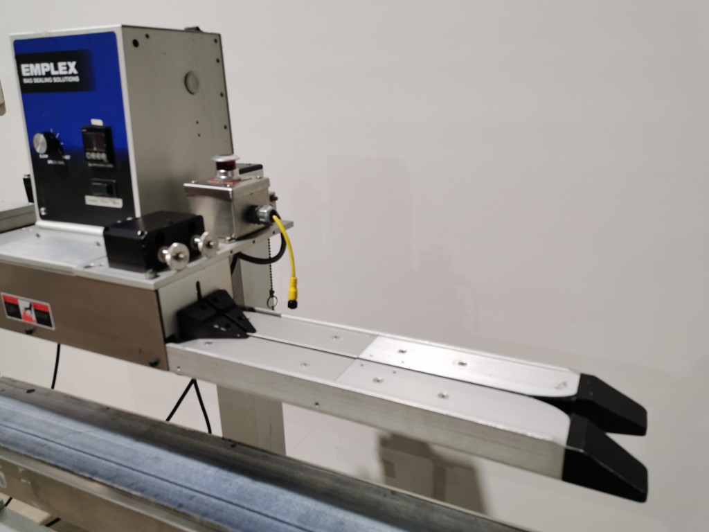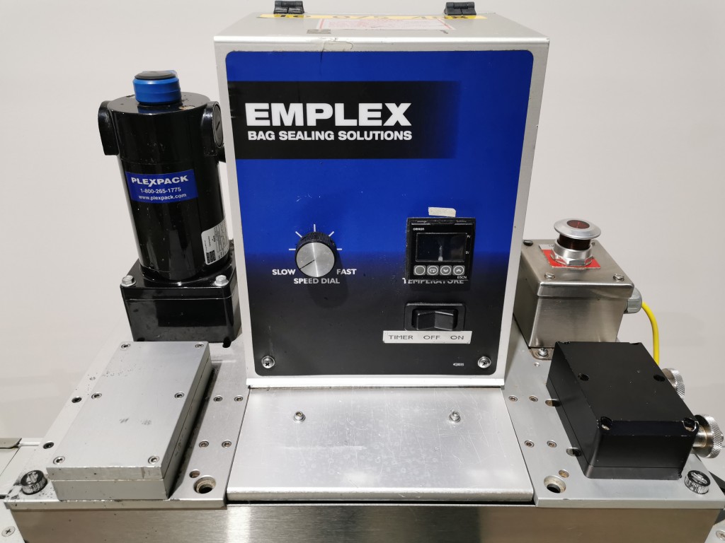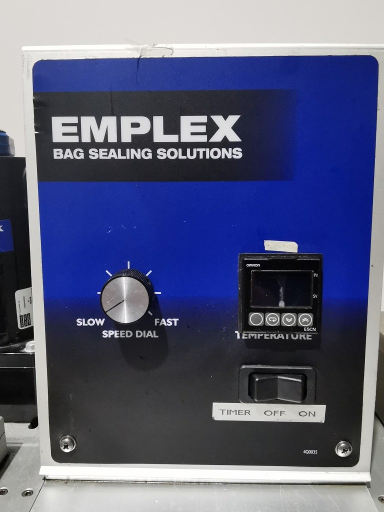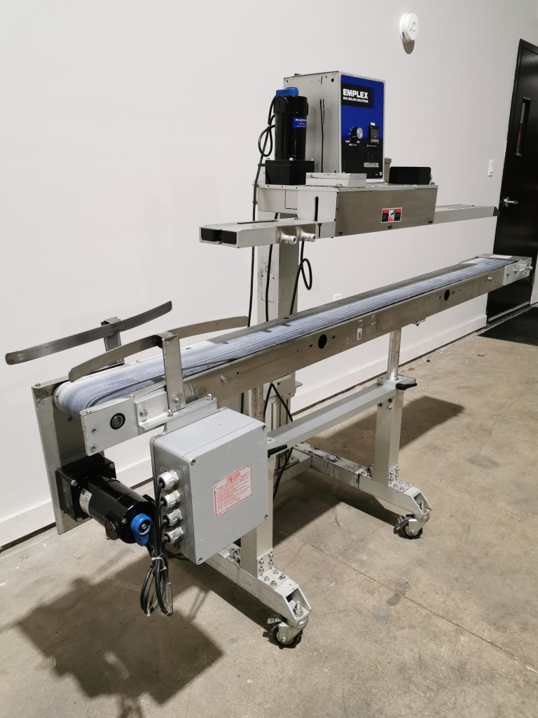 This Emplex runs right to left. It has a flat belt that's 6" wide x 81" long. The sealer has the extension infeed and outfeed. The variable speed controls on the sealer also operates the conveyor speed. All stainless and aluminum construction. In good working condition. Last used in a cosmetic facility.
