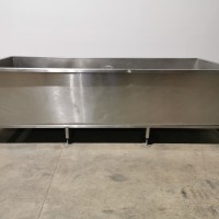 All stainless steel COP tank. The tank is 47.75" wide x 120" long x 27" deep (inside measurements). It has a 2" lip around the entire top edge. The bottom centre drain is 2.25" diameter with a threaded stand pipe drain that's 23.5" high. The tank is currently 38.5" from the floor with height adjustable legs. In good condition. Last used in a food facility.
