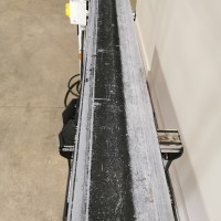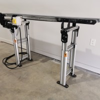 This flat belt conveyor is 8" wide x 70 " long. Aluminum frame construction. It has height adjustable legs and is currently 38" from the floor. Last used in a bakery and had a coder attached, that's why the belt is coloured.