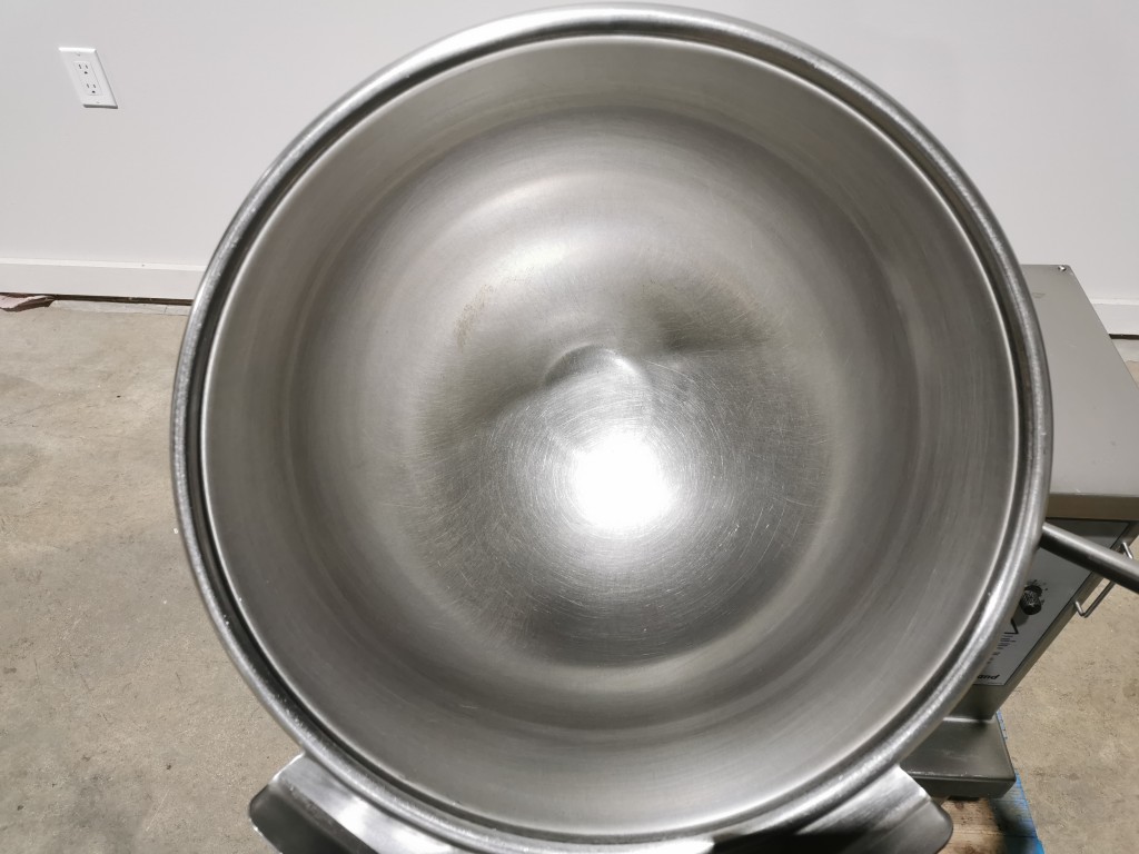 Kettle is 21" diameter x 18" deep. It has a removable lid. Kettle tilts and has a lock for the upright position so you can't pull it over. There is a on / off / temperature control dial. On a stainless steel frame with height adjustable feet (2 feet need replaced). In good condition. Last used in a food facility. MAWP 50 psi @ 298 F. MDMT 33 F @ 50 psi. CRN L6592.5