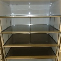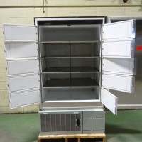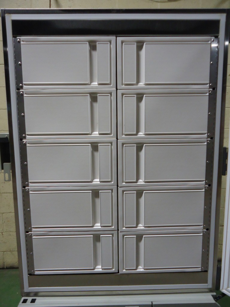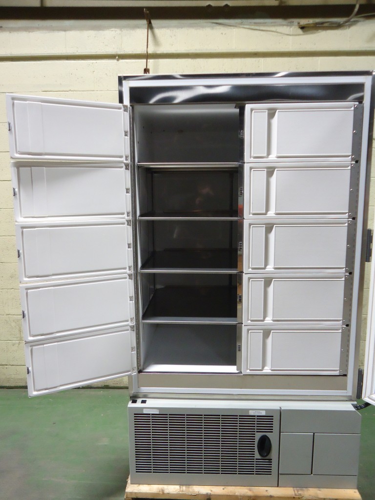 This freezer is rated for -40 to -86 deg C. Inside dimensions are 50.5" tall x 39.25" wide x 27.25" deep. After opening the main door there are 10 smaller compartment doors to access the shelves separately to keep the cold in. There are 4 adjustable stainless steel shelves inside. It has a digital screen display on the door. In very good condition.