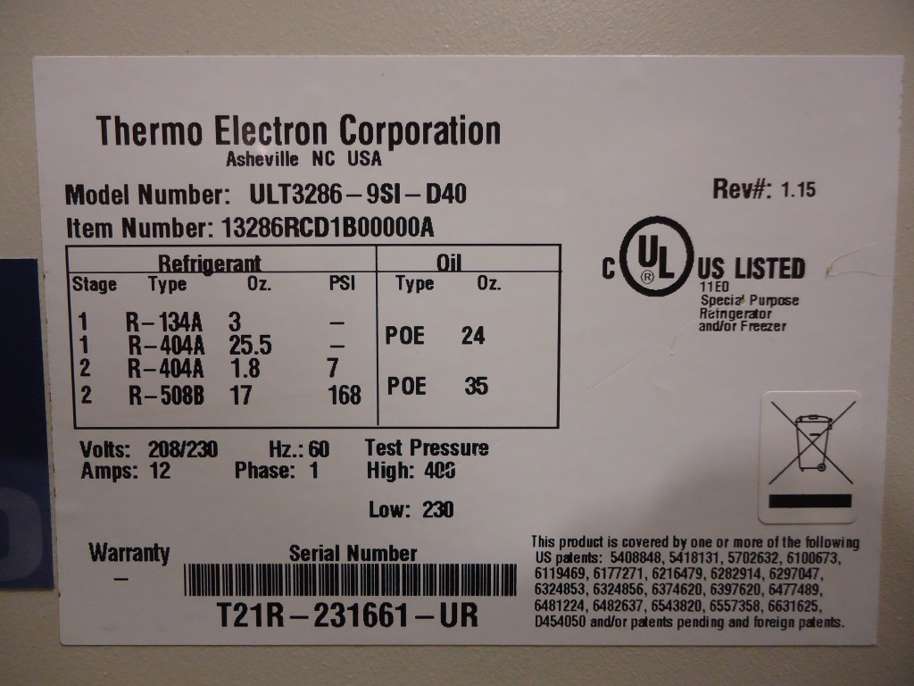 Inquire About This ProductItem #: 5758Manufacturer: Thermo Electron Corp - Revco