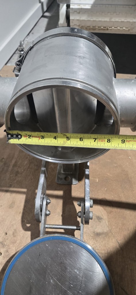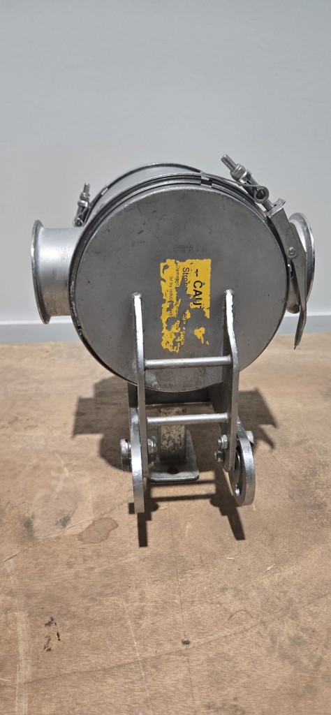 4" food grade magnetic liquid trap. It has rare earth neodymium magnet up to 9000 gauss. This is a plate style for fiberous or larger chunk products. Temperatures up to 120 celcius. All stainless steel.