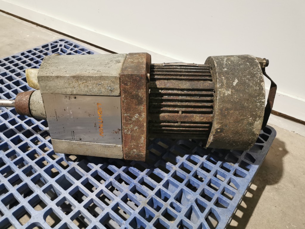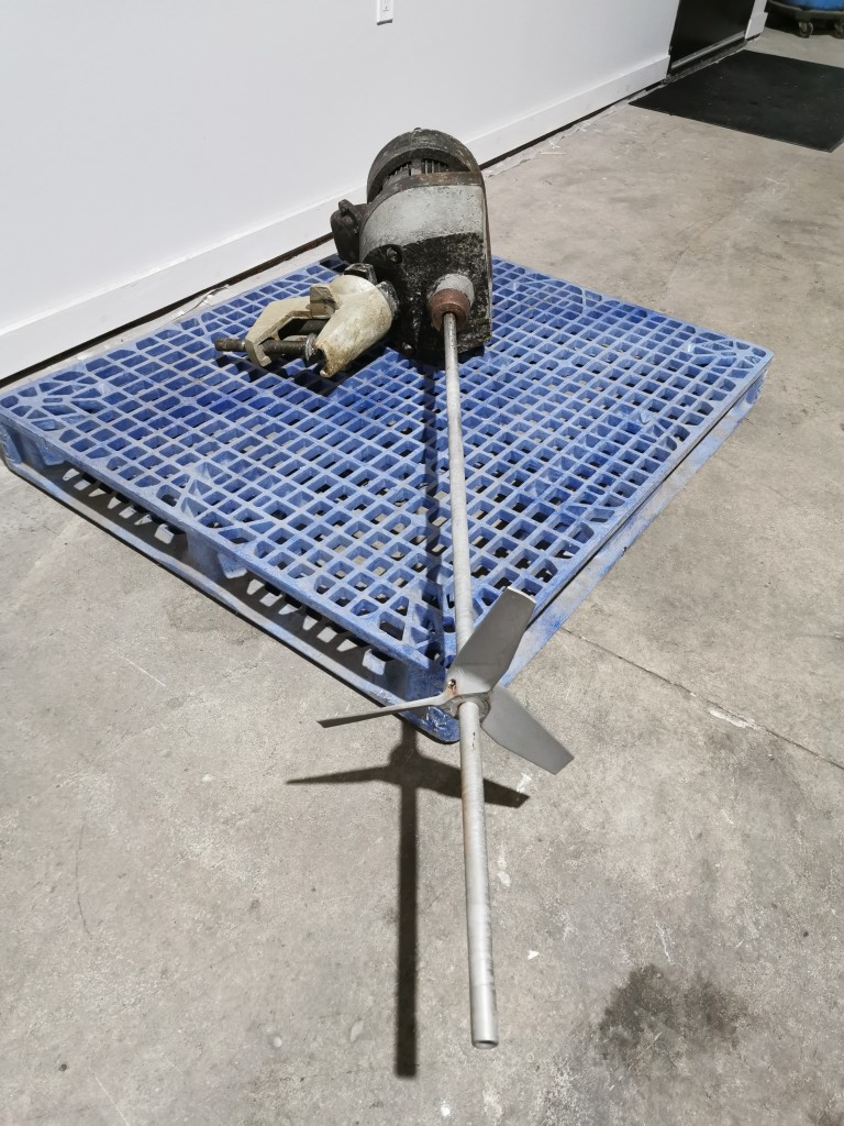 Clamp mounted Lightnin mixer. It has a 7/8" diameter shaft that's 48" long. The impeller blades are 6" long. I needs a good scrub cause the paint is flaking off the gearbox. In good condition. Last used in a food facility.