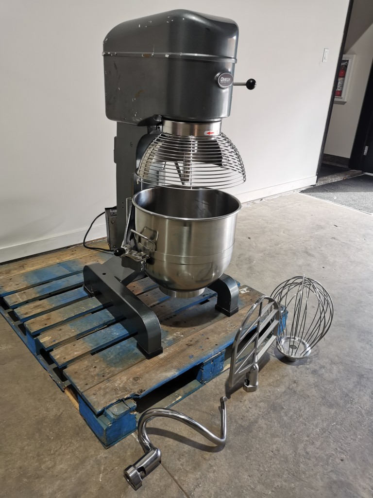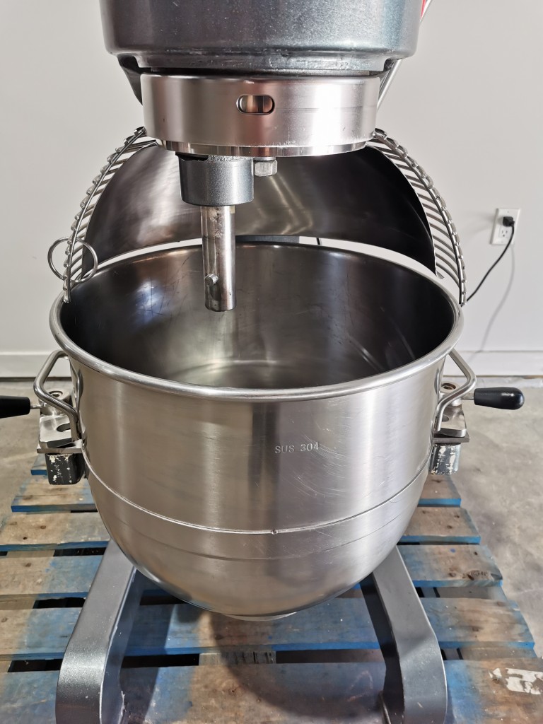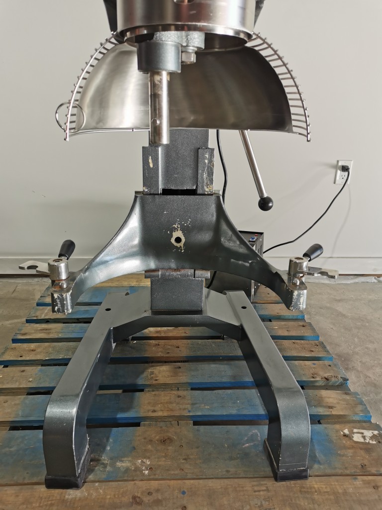 3 speed planetary mixer. 40 quart bowl. It is fully guarded with lock out switches if the bowl is lowered or the cage is opened. Comes with 1 bowl, the hook, whisk and paddle. In good working condition. Last used in a food facility.