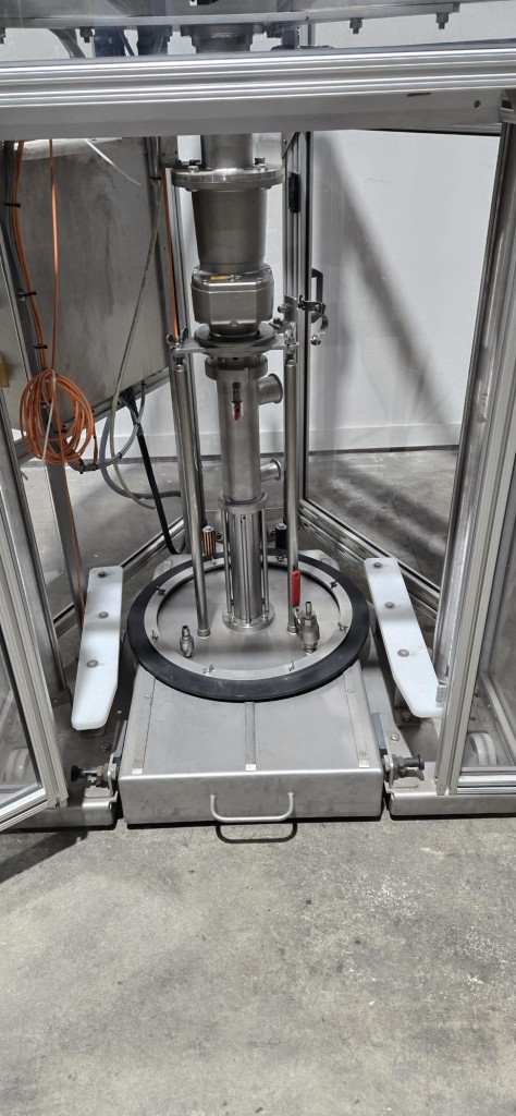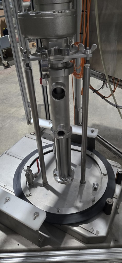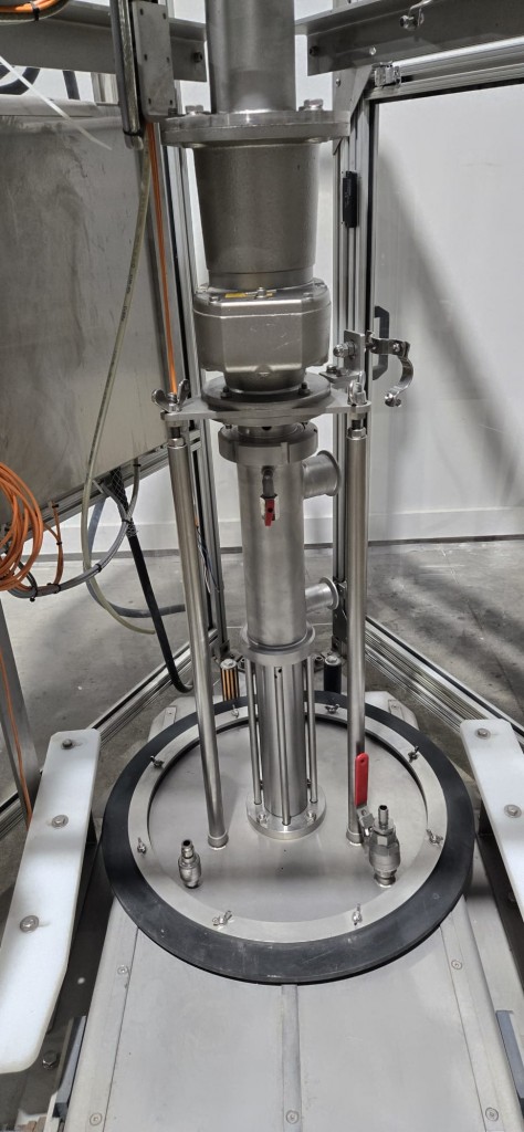 Drum emptying system with a model 2VFL30 Hygenic volumetric dosing pump. Suitable for abrasive, chunky and shear sensitve materials. Good for hot or cold. This unit has a new mechanical seal and gaskets. In good working condition.