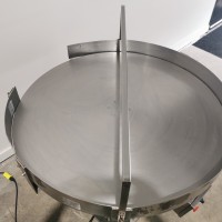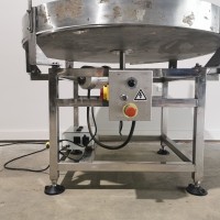 Inquire About This ProductItem #: 609347" diameter stainless steel turntable. It has 4.25" tall side rails. Variable speed controls. It's currently 30.5" from the floor but has height adjustable legs. In good working condition. Last used in a food facility.