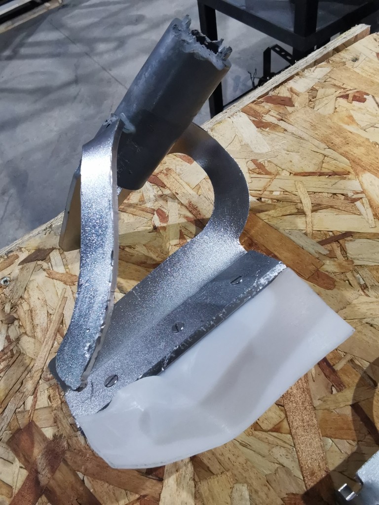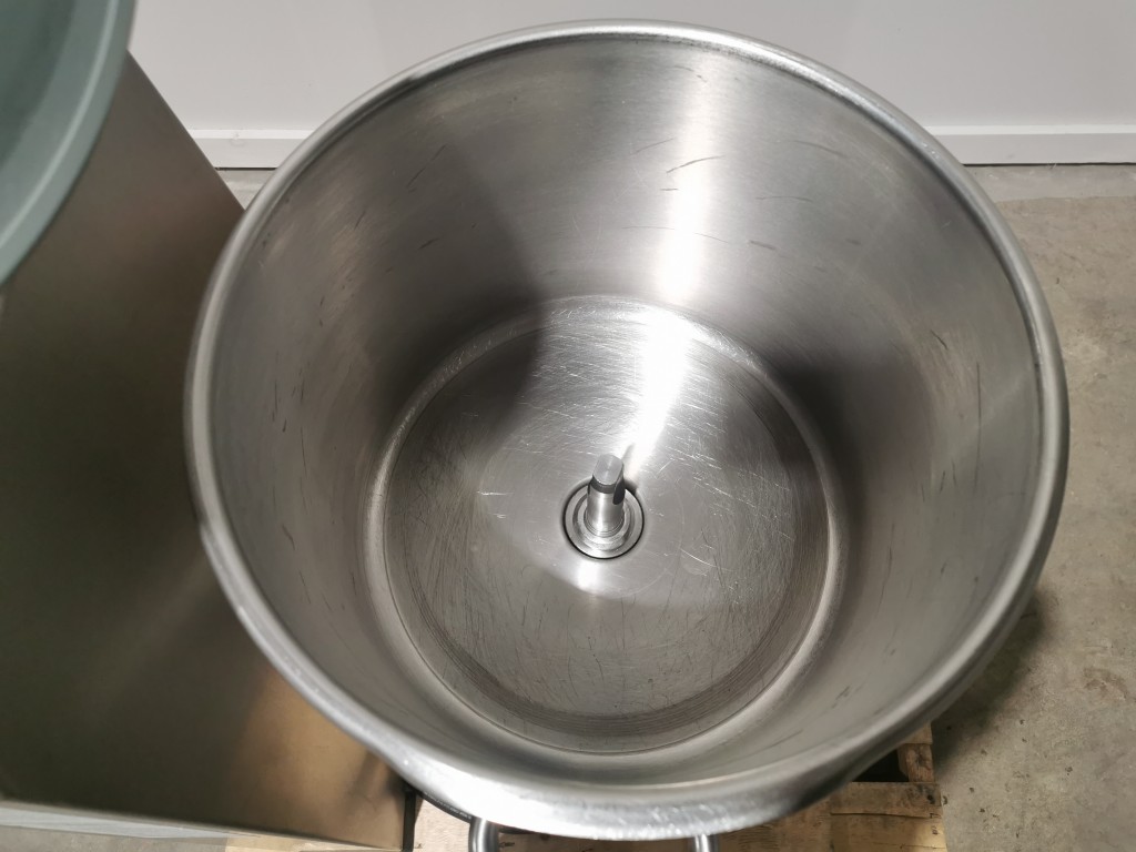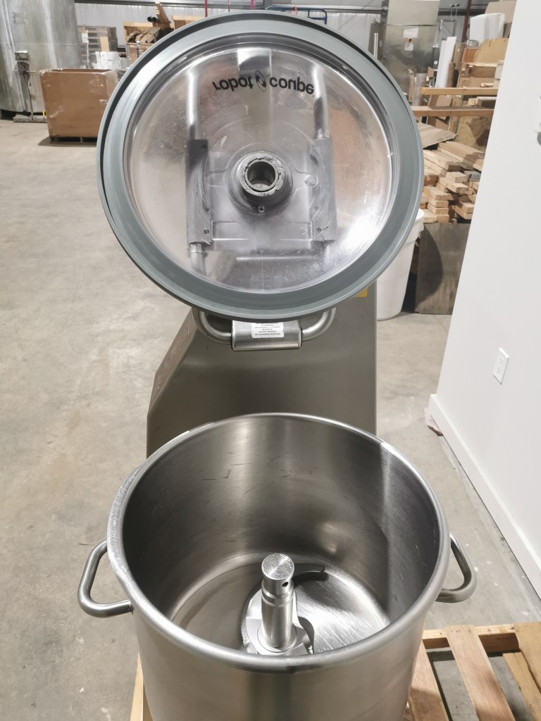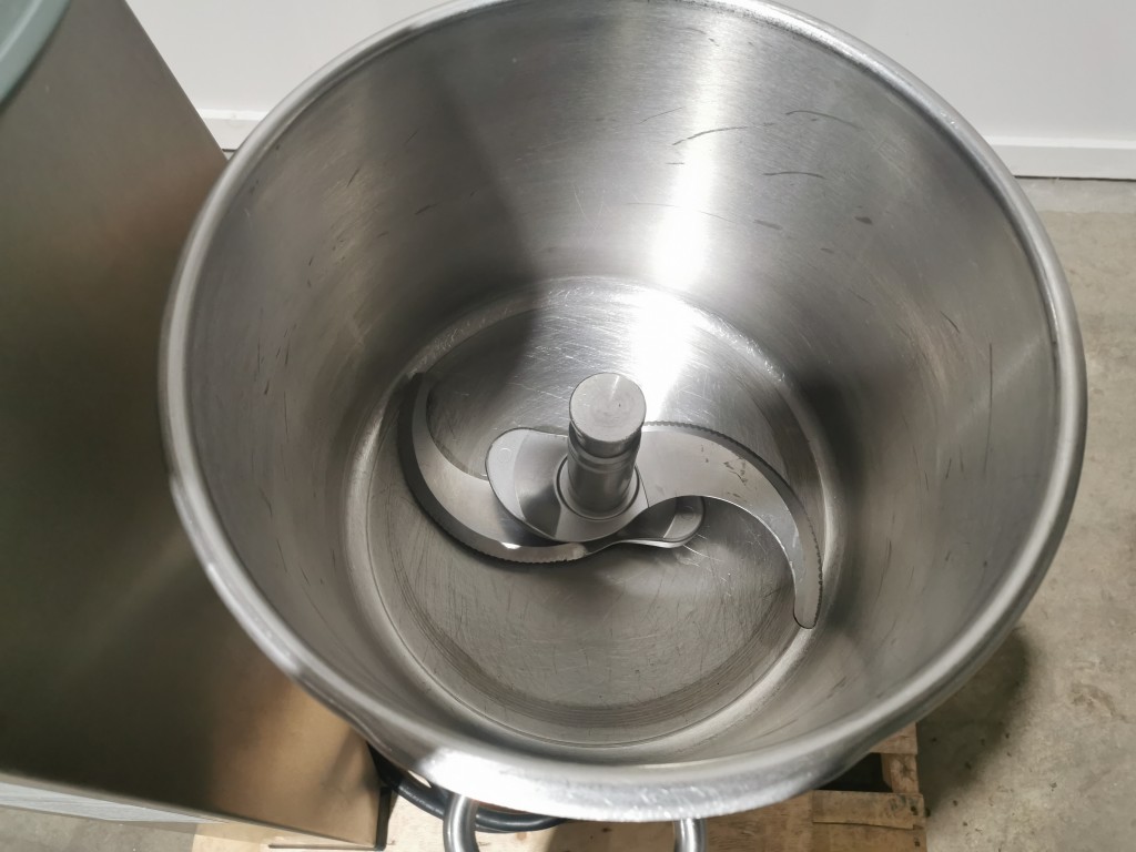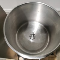 All stainless steel. The hopper is 14" diameter x 11.5" deep. It has a 2 blade assembly inside, the top blade is 2" up from the bottom of the bowl. It has a manual tilt for emptying. It has a digital readout with stainless steel buttons. In good condition. The scraper assembly has been mangled and needs replaced ($4000.00 approximate cost). Last used in a food facility.