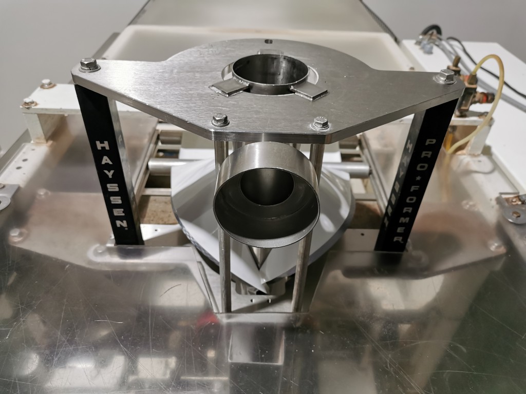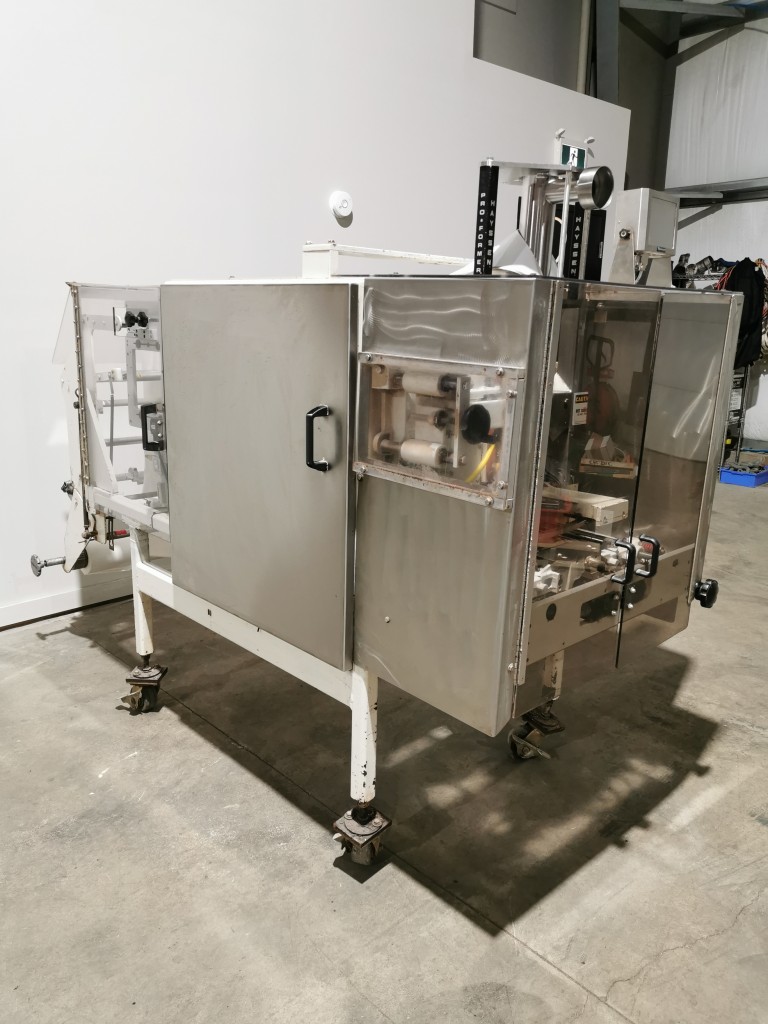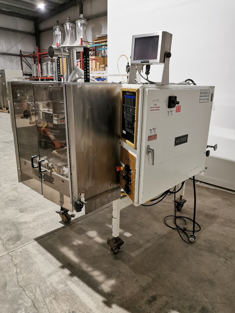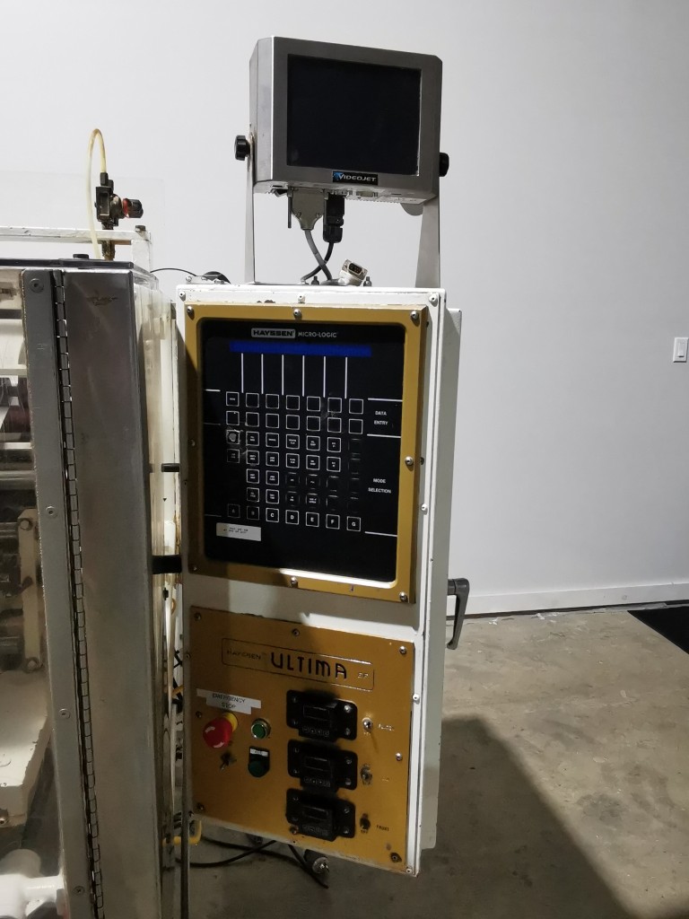 This Hayssen bagger has 13" wide jaws and a 16" back seal. It comes with a Videojet Dataflex coder to code on the film. Last running 5.5" wide x 5.75" long, 45 grams bags with non registered film. During its production time it ran various products like seasonings salts, gravy mixes, waffle mixes etc from 30g up to 2.1kg.