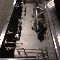 This microfluidizer is all stainless steel. The heat exchanger is 500 psi shell, 150 psi tubes, 250°F temperature. It has a hydraulic fluid pump and reservoir, pressure control and gauge, prime / relief valve. Unit is on casters. Last used in a pharmaceutical facility. Specifications: Operating Pressure: 4,000 to 18,000 PSI, (270 to 1200 bar). Nominal flow rate: 0.5 to 0.6 GPM, (1.9 to 2.3 LPM). Sample size: 1 gallon to continuous.