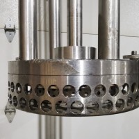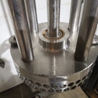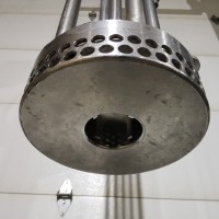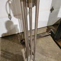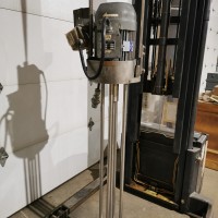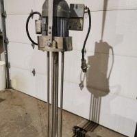 This drop in homogenizer has a 48" long x 1" diameter shaft. The emulsifying head is 7.75" diameter overall with a 5" diameter stator (opening in the bottom). It has an old electrical box with start / stop buttons but it should be updated. It has the lifting bar / arm for picking it up. Spins nice and easily by hand. In good working condition. Last used in a cosmetic facility.