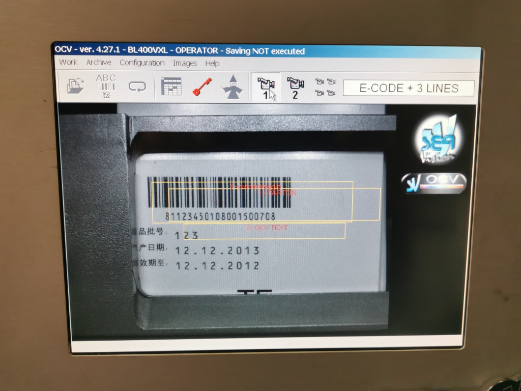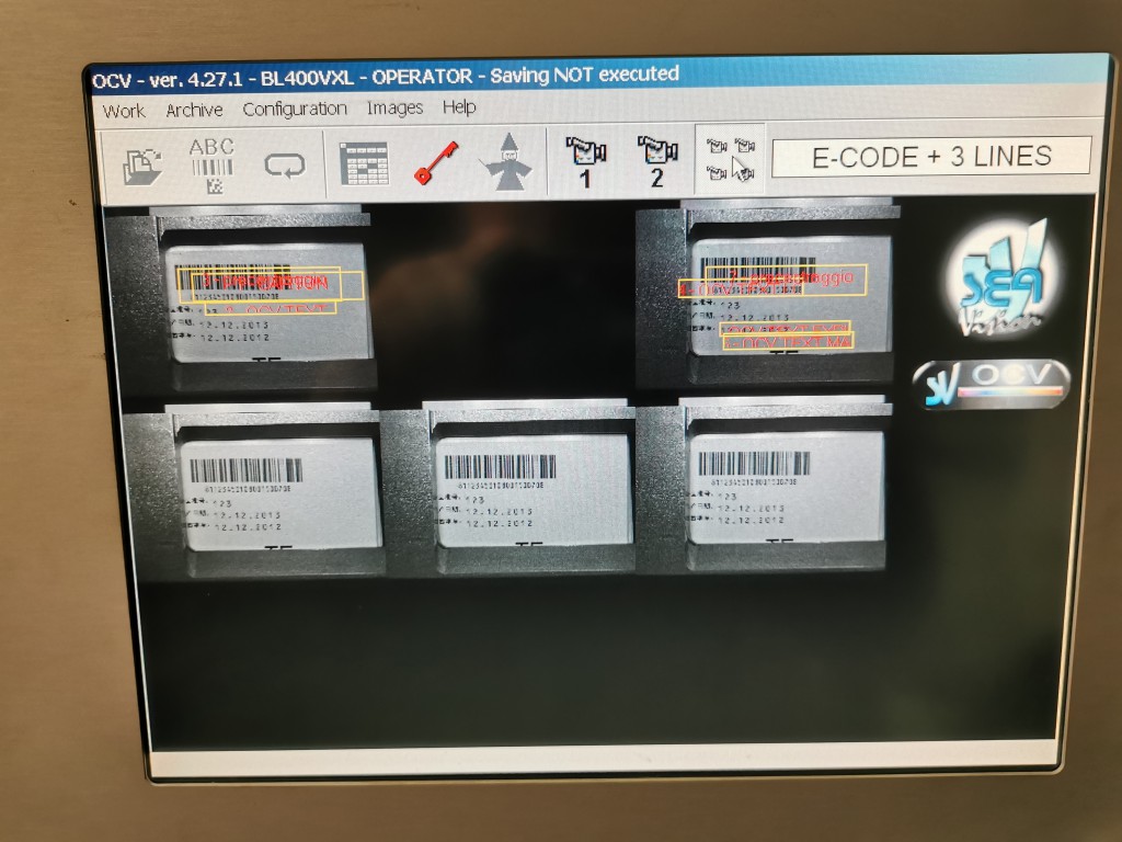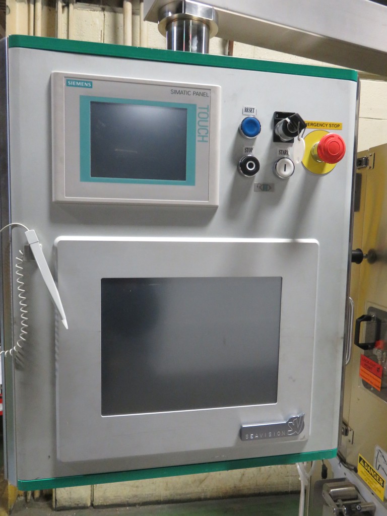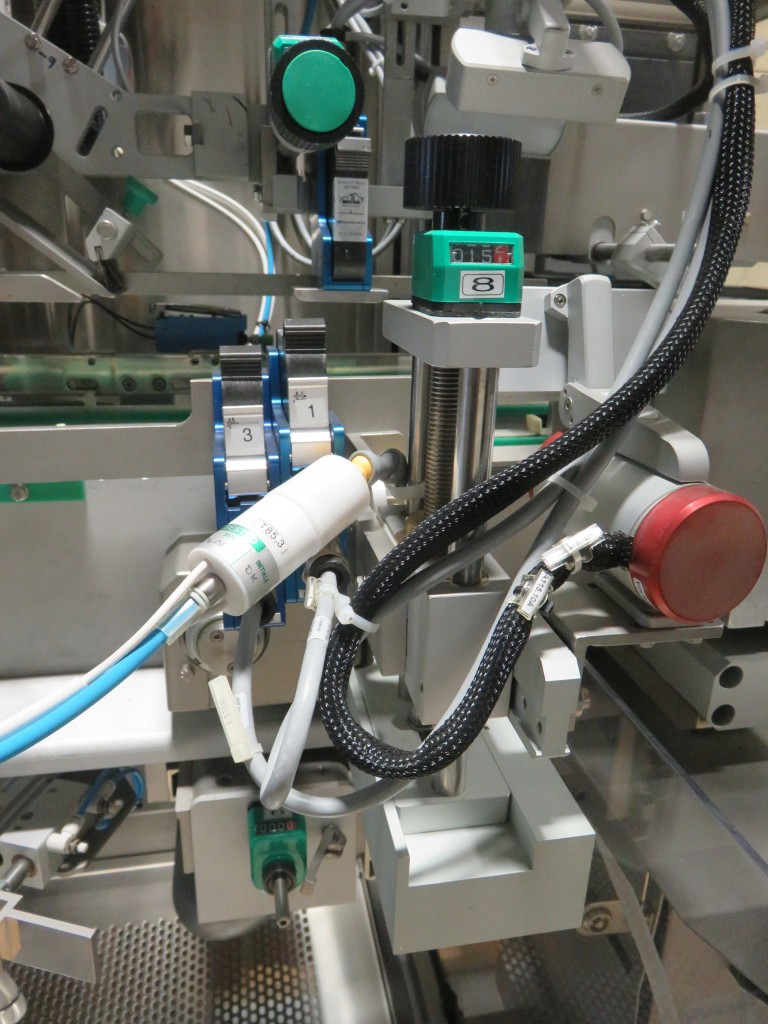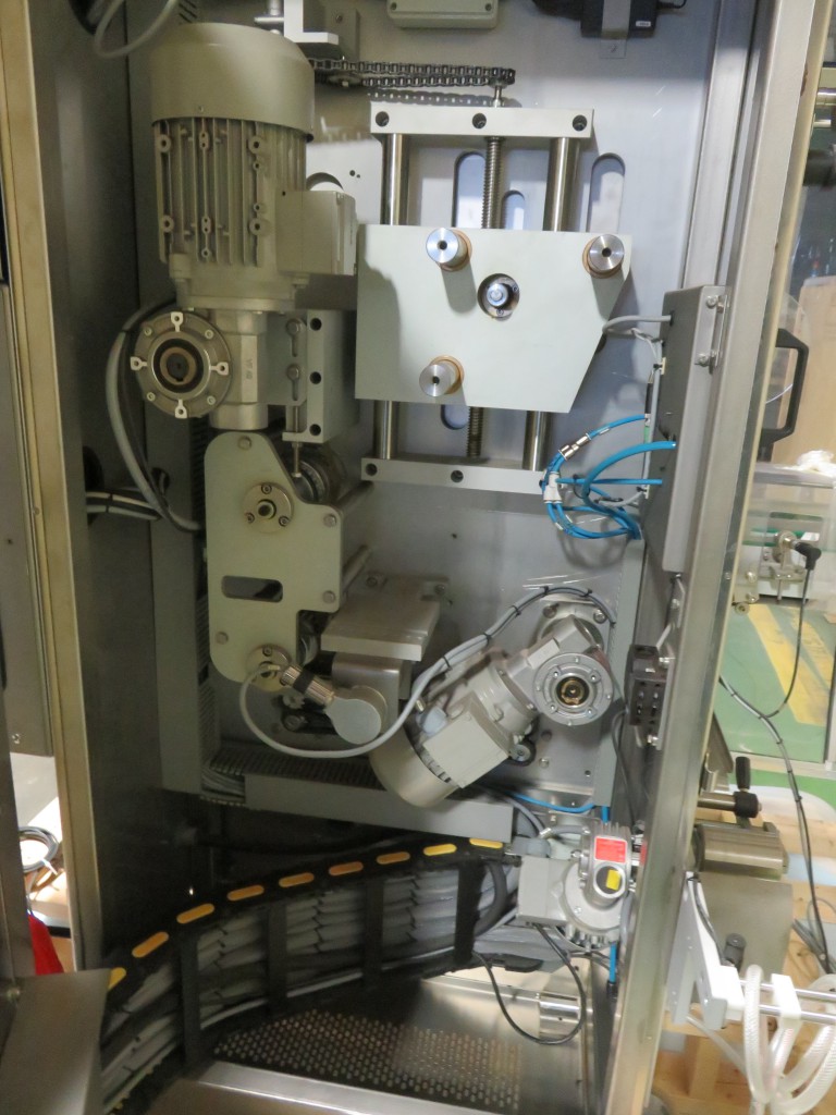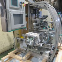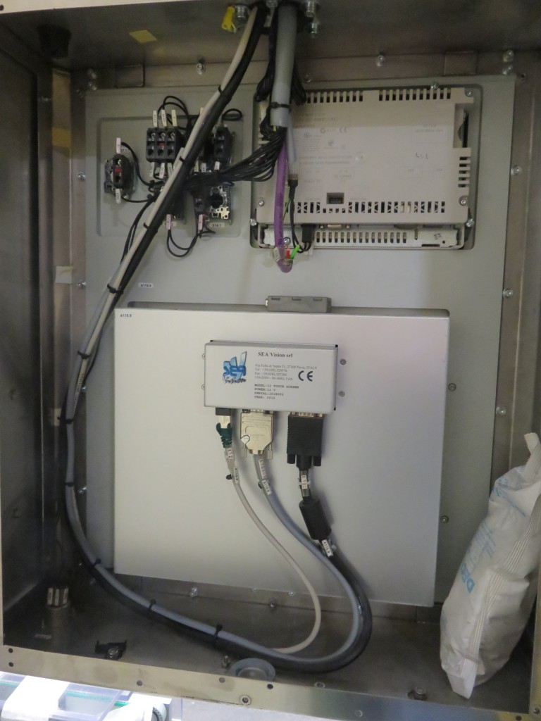 This labeller is designed to apply pressure sensitve labels on the upper side of already formed cartons. The track and trace system on the machine allows you to print and verify a serialized code on the carton. It takes a maximum web reel of 400mm. Cartons are conveyed into the machine by two infeed belts. The cartons are spaced and inserted in time with the toothed belted conveyor that feeds into the labelling zone. The label is applied and a printer prints a barcode on the Vignette. Another ink jet printer prints a serialized code on the upper and lateral face of the cartons. Any incorrect labels are instantly rejected. Coder is a Wolke M600. Maximum machine speed is 400 per minute. Comes with spare parts as shown. Last used in a pharmaceutical facility. In excellent condition.